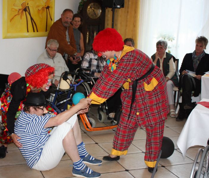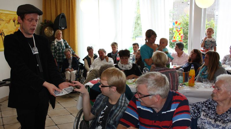 Bewohner und Angehörige waren begeistert von den Turnkünsten der jungen Mädchen, die mit einer Akrobatik-Nummer für Staunen sorgten. Der Zauberer faszinierte die Zuschauer mit seinen Tricks. Zum Beispiel verschwand ein Fünf-Euroschein und tauchte später in einer Apfelsine wieder auf. Nach der anschließenden Klamauk- und Clownnummer, vorgeführt von Mitarbeitern des Pflegeteams, waren sich die Bewohner und Angehörigen einig, dass sie dieses schöne Fest lange in Erinnerung behalten werden.