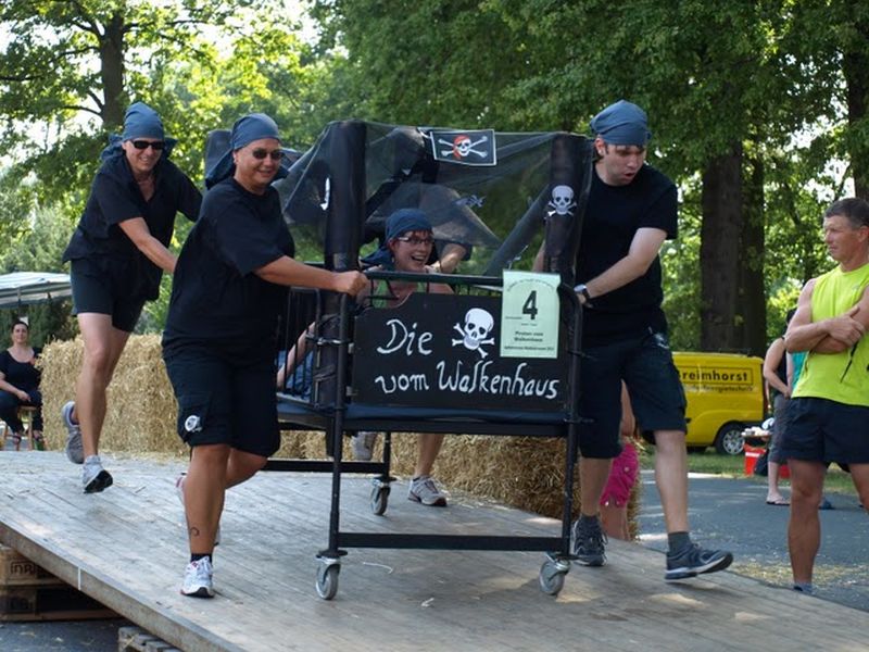 Fotoalben » Personal / Mitarbeiterteam » Mitarbeiterfeiern / -veranstaltungen (Beispiele) » Bettenrennen Mantinghausen Auch beim Bettenrennen in Mantinghausen konnte sich das Walkenhaus-Team sehen lassen.