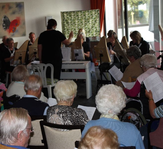 Anläßlich des Weltalzheimertages 2014 präsentierten 19 Musiker des Ensembles "Halterner Harfenzauber" einen Liederreigen von Klassik bis zur Volksmusik, wobei viele Lieder auch zum Mitsingen einluden.